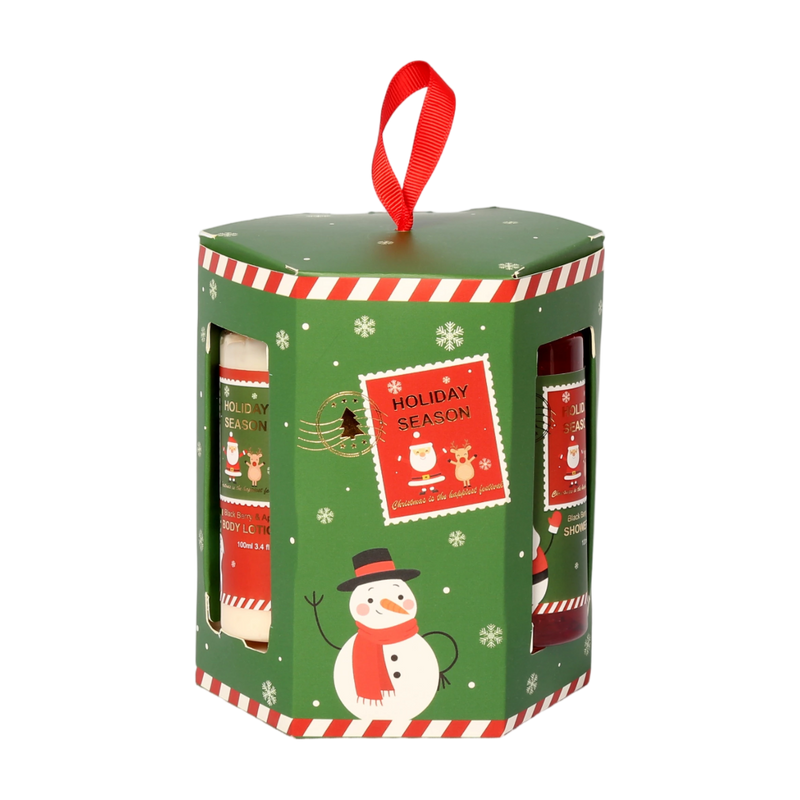 The elegant paper box with decorative ribbon and organized paper tray creates immediate visual appeal, transforming essential personal care into an attractive gift item that supports higher retail margins.