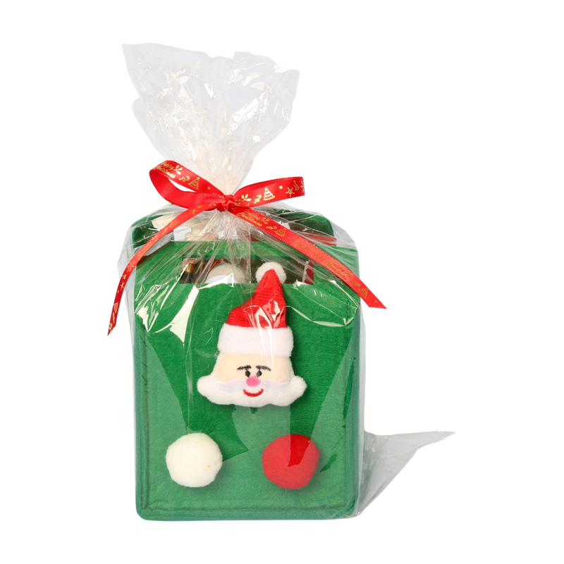 The Santa felt bag presentation requires no additional wrapping, making it ideal for holiday displays and seasonal promotions where thematic packaging drives impulse purchases.