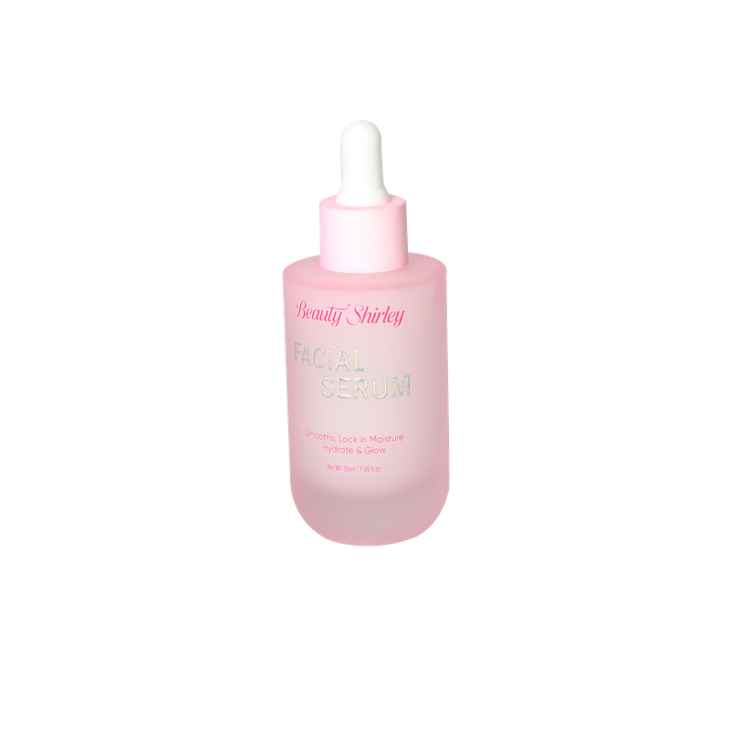 Contents | 50ml Facial Serum in frosted glass bottle + matte dropper cap + direct foil printing. |